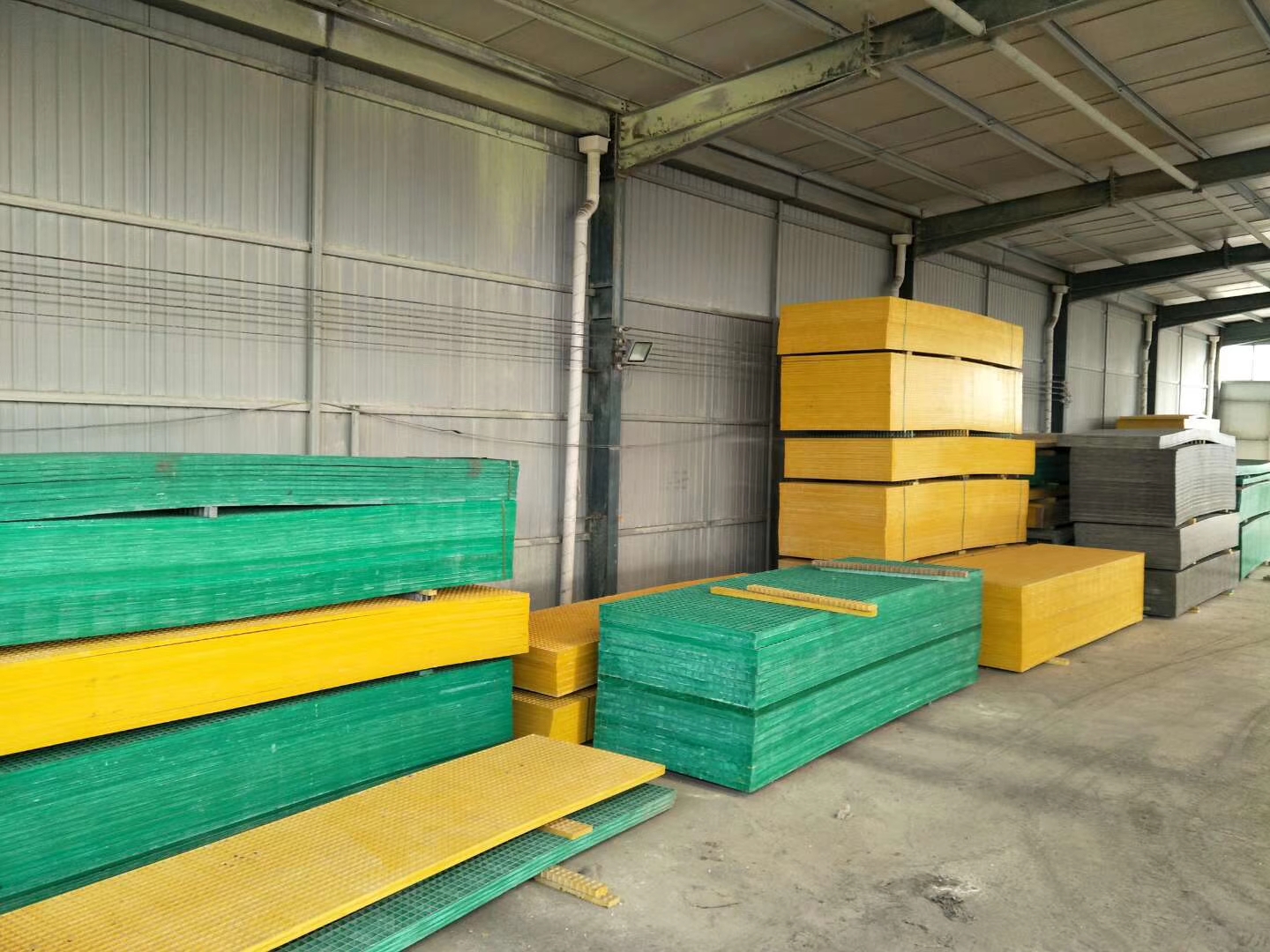 地溝蓋板: 許多化工廠、冶煉廠的電解車間,電廠的化學(xué)處理車間;電鍍廠,蓄電池廠,機(jī)械廠的酸洗車間;制藥廠,印染廠,鹽礦等都有大量的地溝,地溝中多為腐蝕性液體,傳統(tǒng)的地溝有用角鋼,扁鐵焊接的格柵、鑄鐵格柵、水泥蓋板等,這些材料不耐腐蝕,多則幾年,少則數(shù)月即被破壞,車間里呈現(xiàn)支離破碎模樣,使用FRP格柵就可以很好的解決腐蝕問題,同時(shí)便于污水泄入水溝中,還便于隨時(shí)觀察地溝內(nèi)的情況。